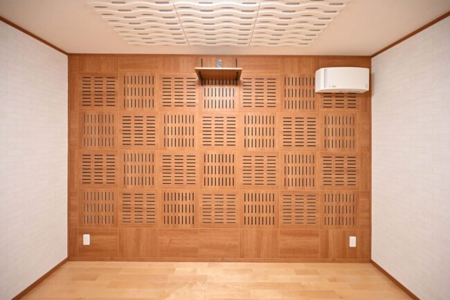 この家には、楽器演奏ができる防音の音楽室があり、仲間とのセッションも楽しめる特別な空間になっています。