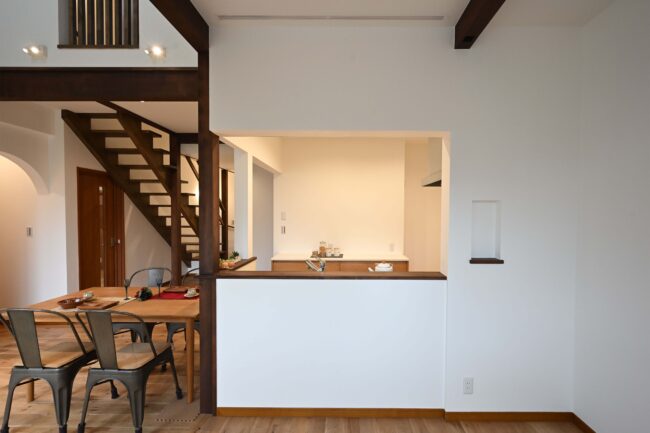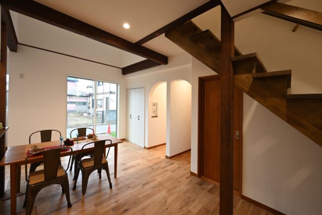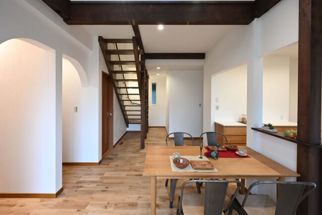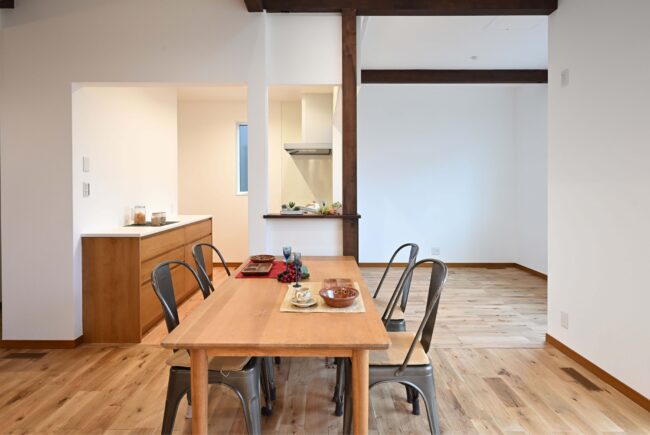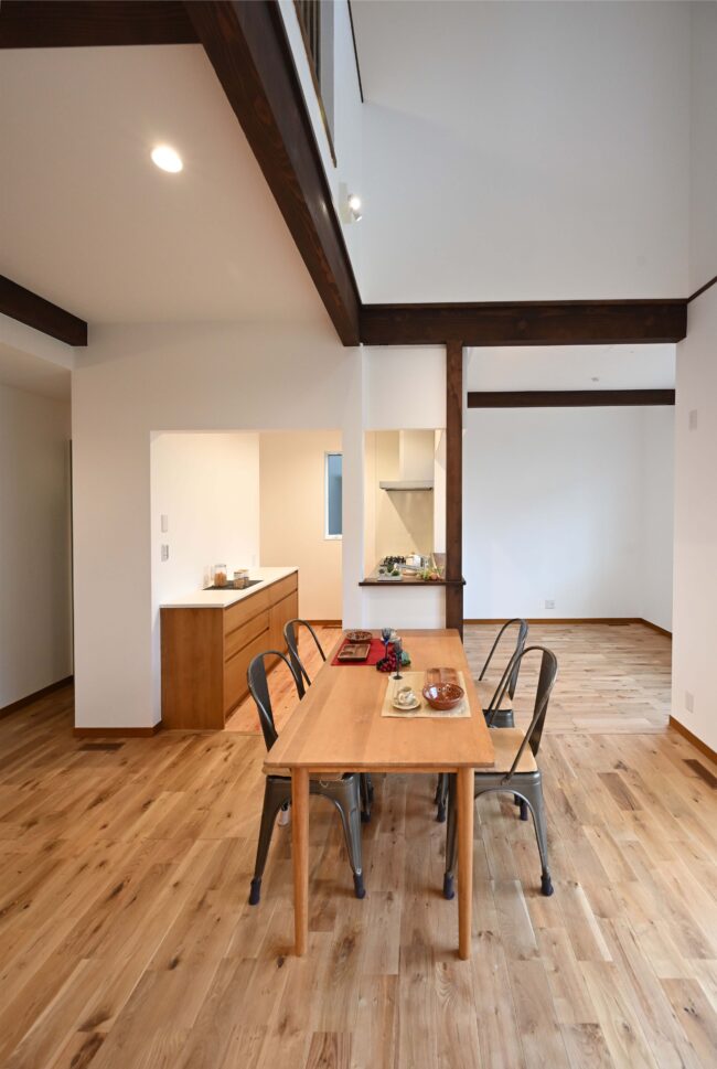 現しの柱や梁が木の温もりを感じさせ、素材の魅力が随所に息づいています。