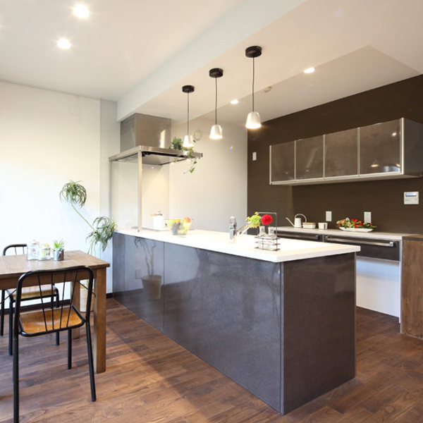 孤立感を持たれていた以前のキッチンは明るい南側に配置し、外の景色を眺めながら、お料理をすることができるアイランドキッチンとしました。
