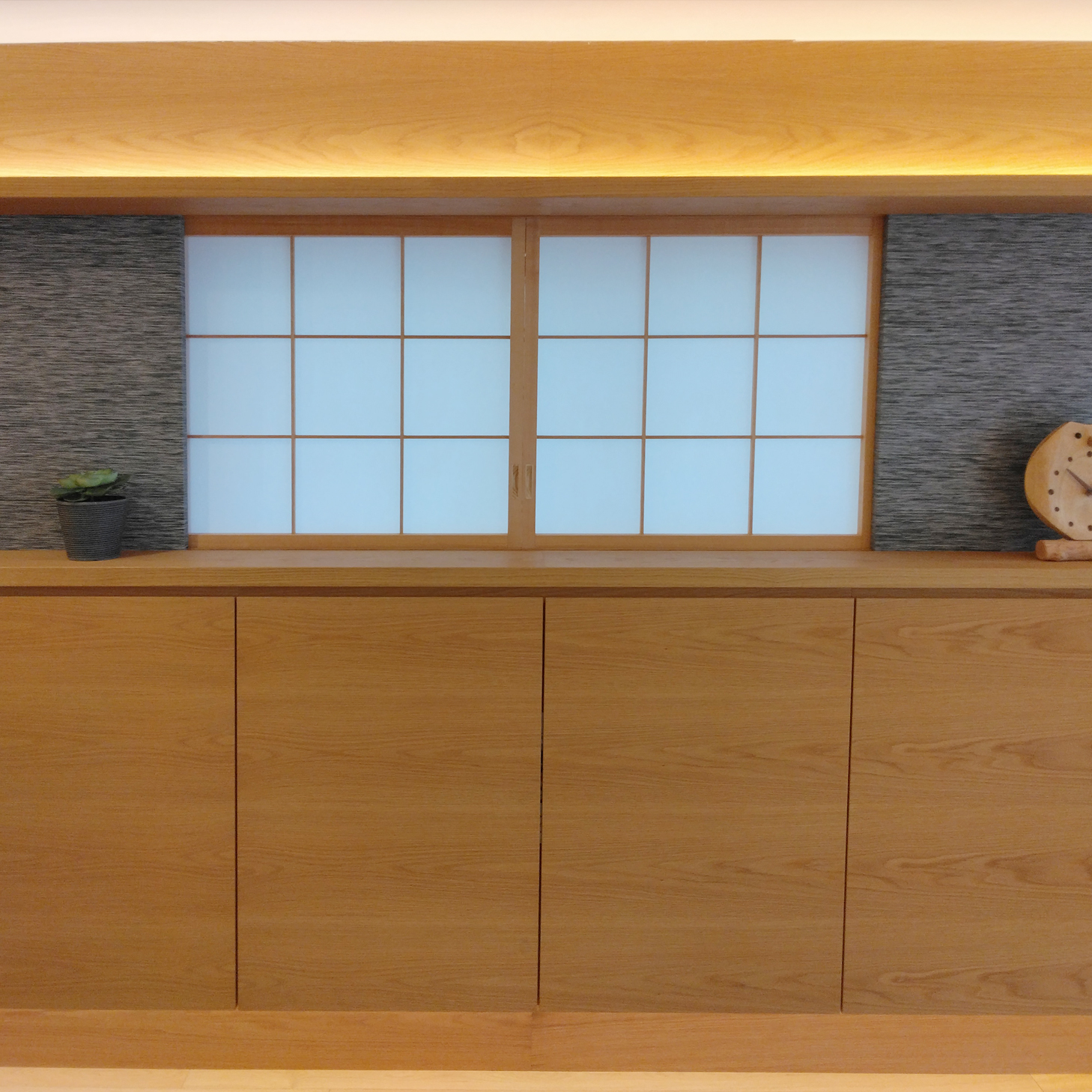 障子と造作引き戸を組み合わせた窓まわり。間接照明で天井を照らし、落ち着いた雰囲気を演出。寝室などでの活用イメージに最適です。