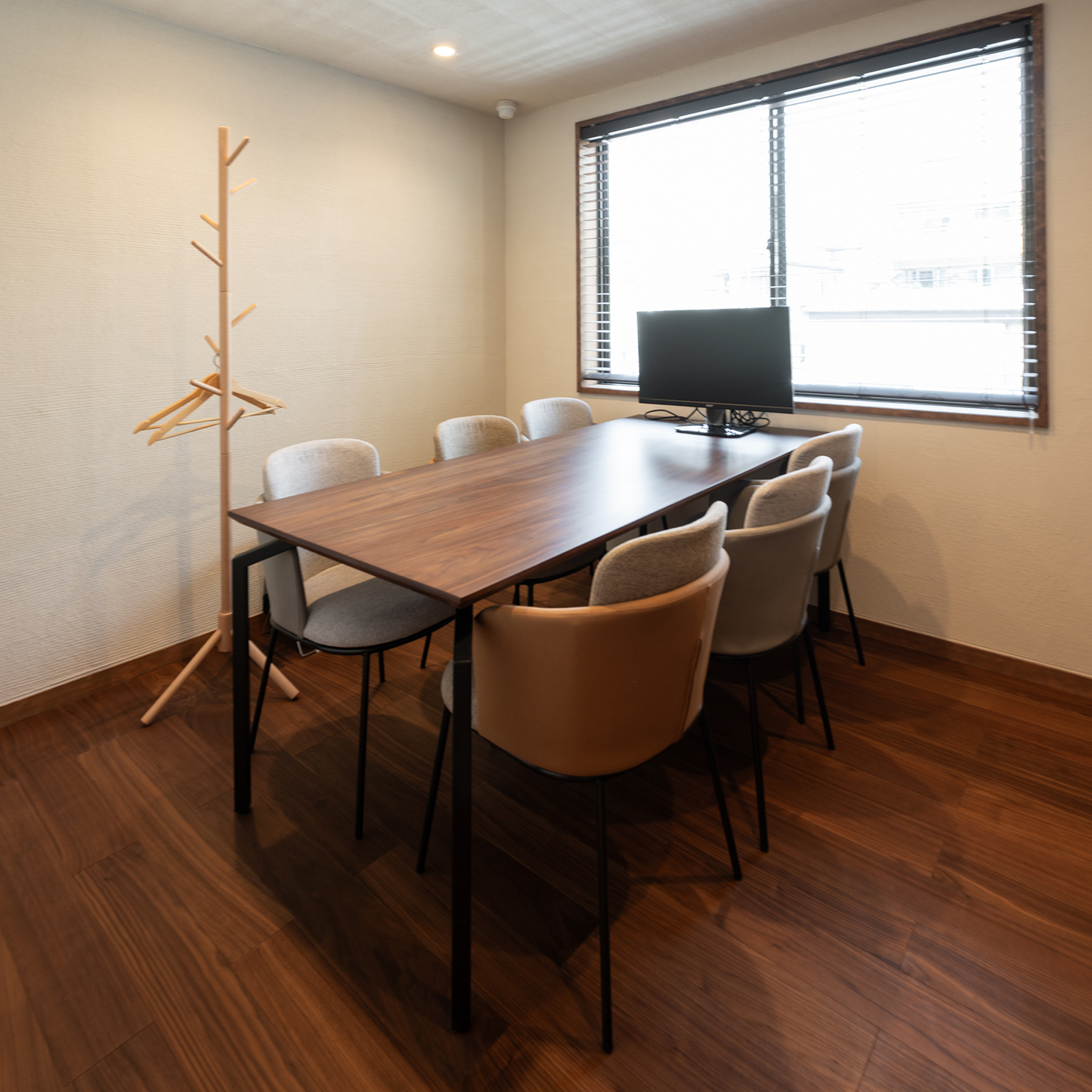 ウォールナットの床を使った落ち着きある個室。無垢床と漆喰壁に包まれた空間を実際に体感していただけます。