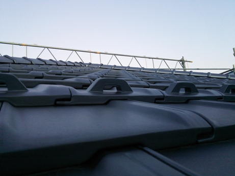 雪止めは瓦施工前であれば瓦で出来た雪止めがあり、施工後ですと金物を取り付けます。