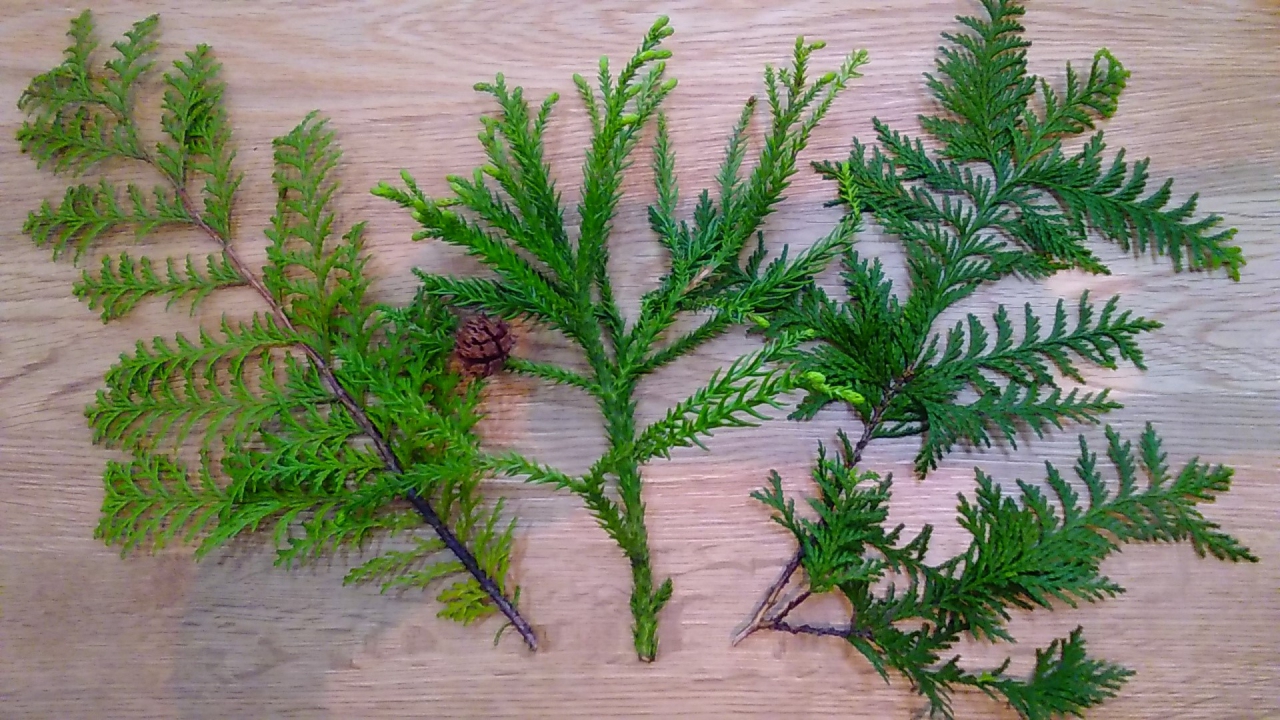 「檜」の特徴⇒葉っぱは平ぺったくて尖っていない。