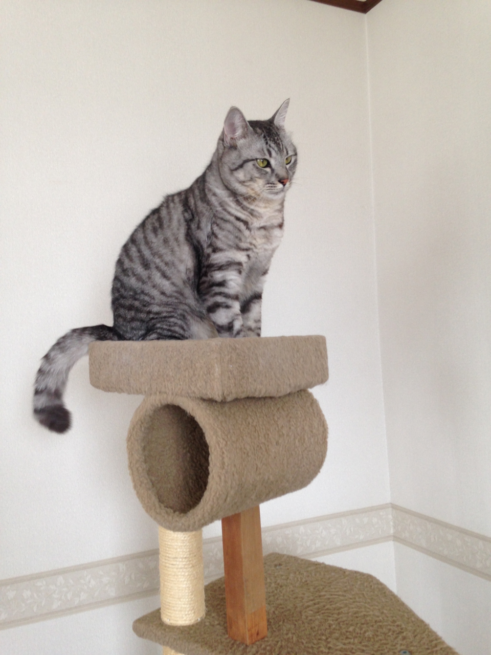 お気に入りのタワーがぷっくんの重さに耐えられず、ぐらぐらしてきたので