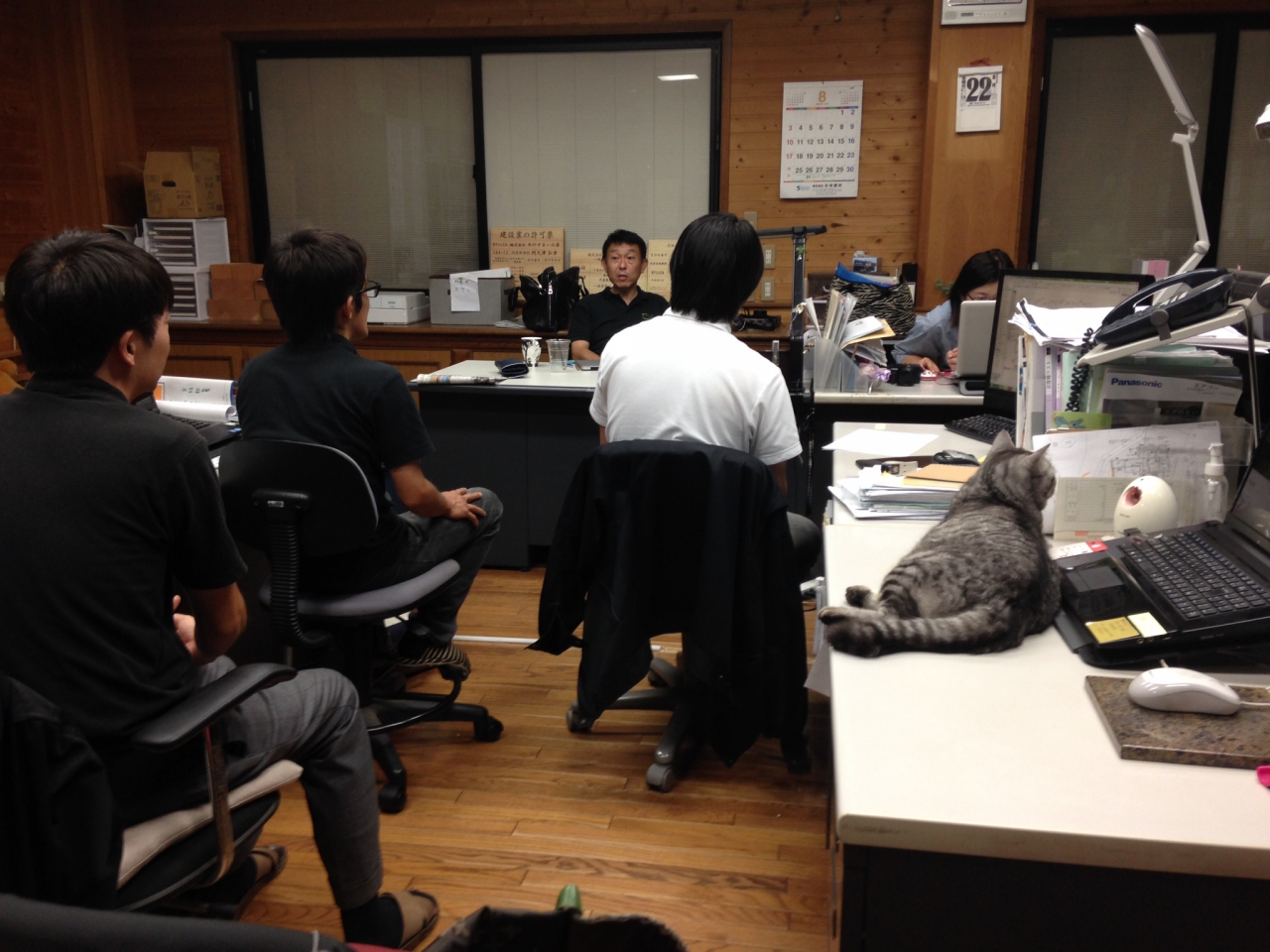 夜の社内打ち合わせにも参加します。