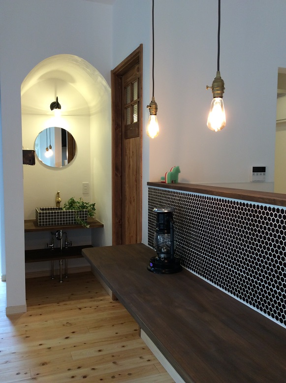 img_1144-2082807H様邸。リビングの洗面台コーナー。ドーム天井で特別なスペース感です。