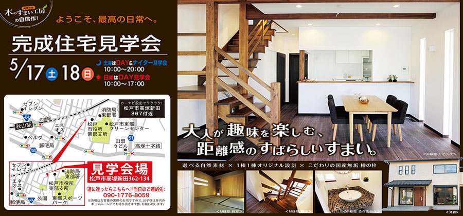 17日、18日は松戸市で完成現場見学会です!|千葉の注文住宅なら木のすまい工房