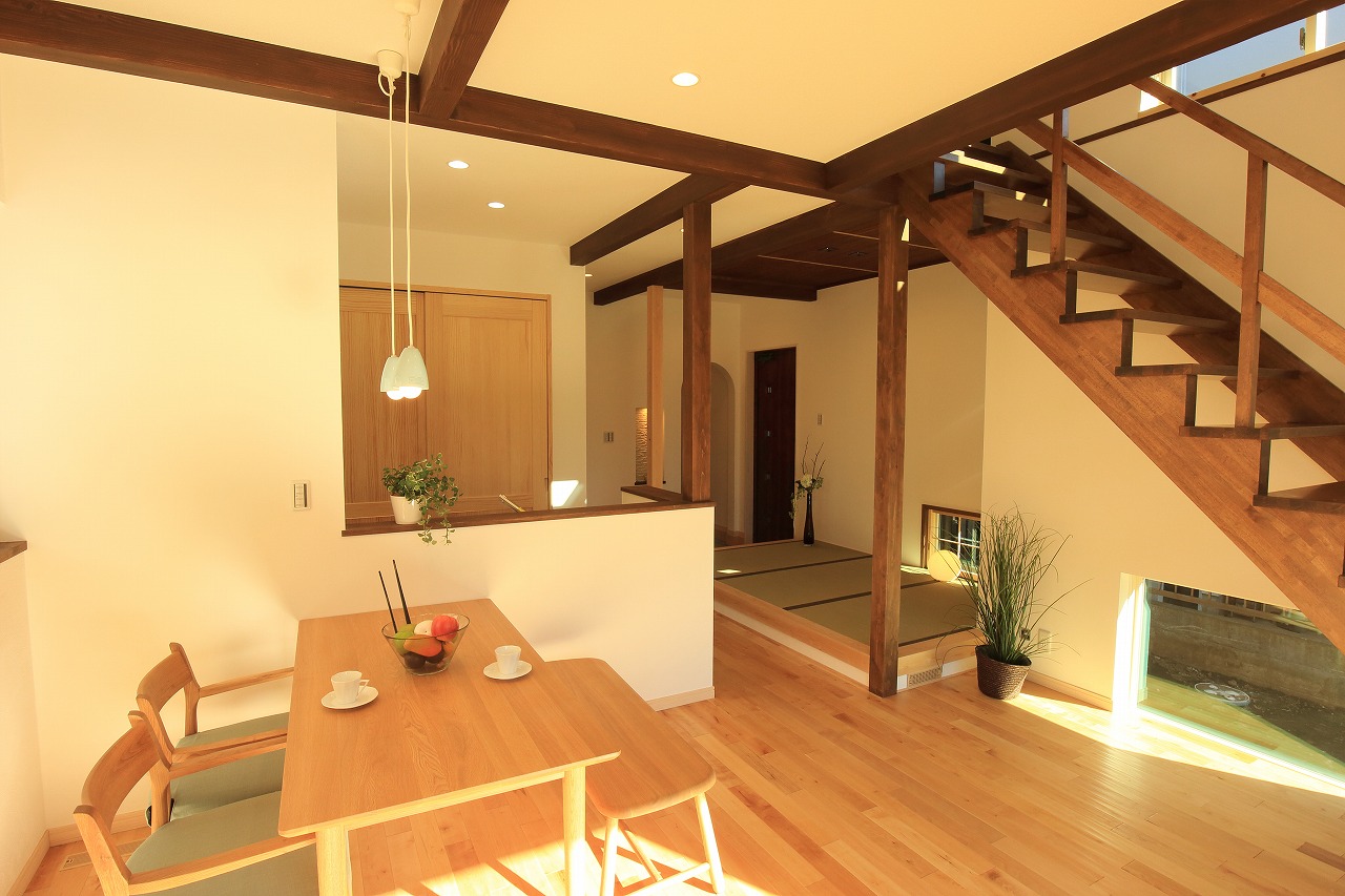 私たち【木のすまい工房】は、大手住宅会社では扱いきれない様々な”個性のある自然素材”や”こだわりの素材”などをふんだんに使用し、デコレーションに頼らず素材その物の美しさをいかしながら、いつまでも飽きのこない住まい創りを行っております。