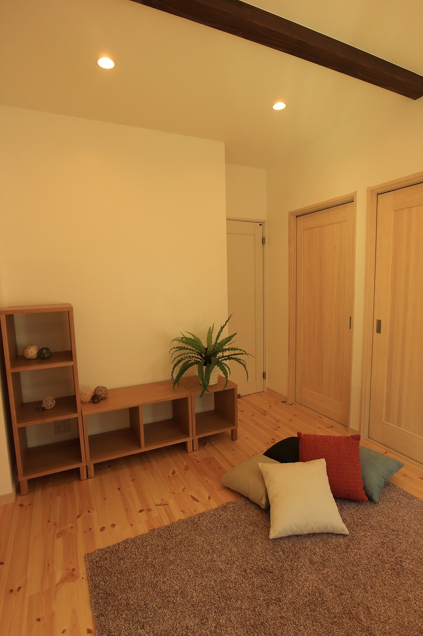 そのすぐれた桧の耐久性を活かす断熱材がセルロースファイバーです。吸放出をする自然素材の断熱材セルロースファイバーは壁の中で結露を起こさず、優れた、断熱性能を発揮します。このような構造材が心地よい木の家を実現します。また、内装においても、自然素材にこだわっております。床材は全室、無垢のフローリング、壁は吸放出性能の高い漆喰壁と一部薩摩中霧島壁を使っており、いつも室内はきれいな空気です。