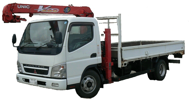 でも 工事車両の ユニック車(クレーン付きトラック) クレーン車 ユンボ(パワーショベル)を積んだトラ